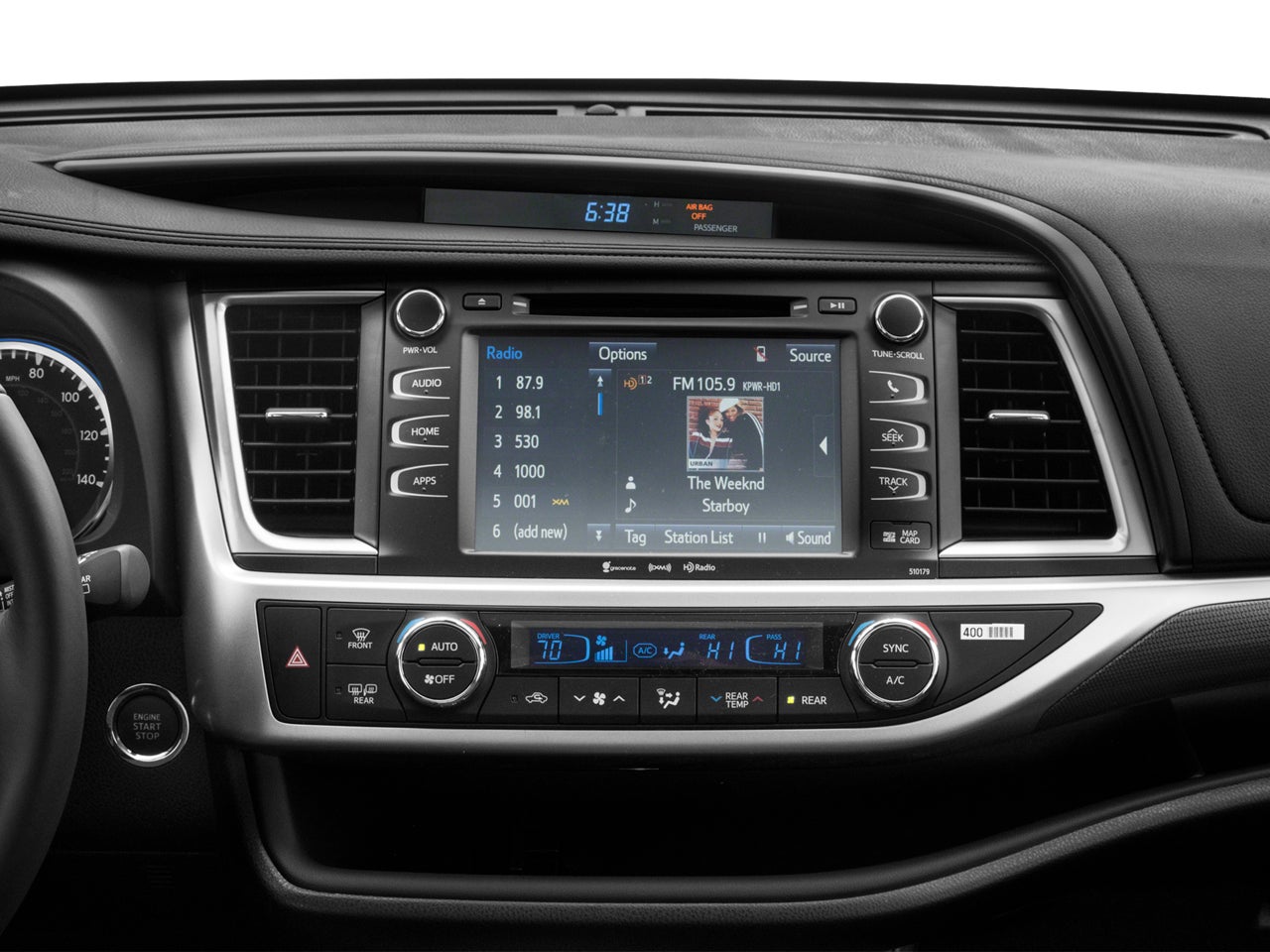 - Radio: Entune Premium Audio w/Nav & App Suite -inc: the Entune Multimedia Bundle (8" high resolution touch-screen w/split screen display, AM/FM CD player, MP3/WMA playback capability, 6 speakers, auxiliary audio jack, USB 2.0 port w/iPod connectivity and control, advanced voice recognition, hands-free phone capability, phone book access and music streaming via Bluetooth® wireless technology), Siri Eyes Free, Entune App Suite, Intelligent Touch controls, SiriusXM Satellite Radio w/3-month complimentary SirusXM All Access trial, HD Radio, HD Radio predictive traffic and Doppler weather overlay, AM/FM cache radio, Gracenotes album cover art and integrated back up camera display w/projected path